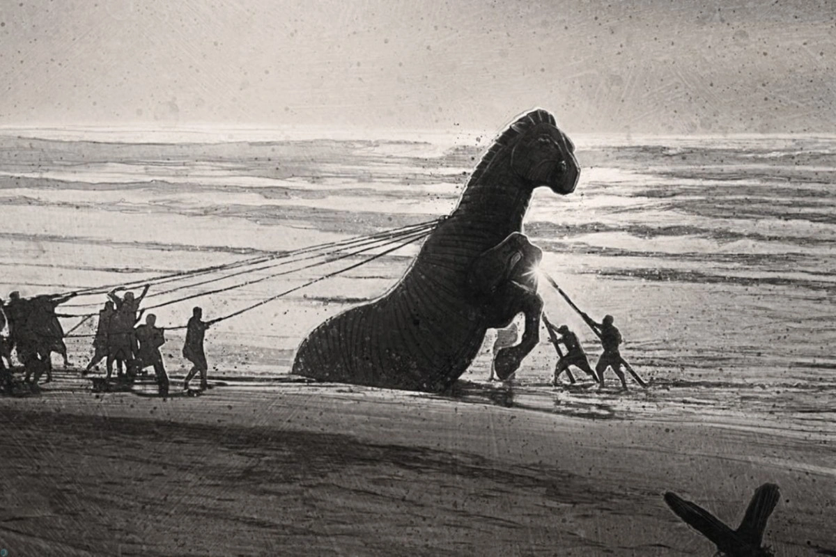 کاور مخصوص امپایر، مت دیمون را در نقش اولیس نشان میدهد؛ کاور دیگر هم گروهی از جنگجویان را به تصویر میکشد که اسب تروا را بهسمت شهر میبرند.
